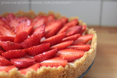 Décidément je suis en pleine période fraises en ce moment ! Après mes cupcakes façon fraisier qui ont eu bien du succès, auprès de vous lecteurs comme de mes proches qui ont pu y goûter, je vous reviens avec une tarte aux fraises.